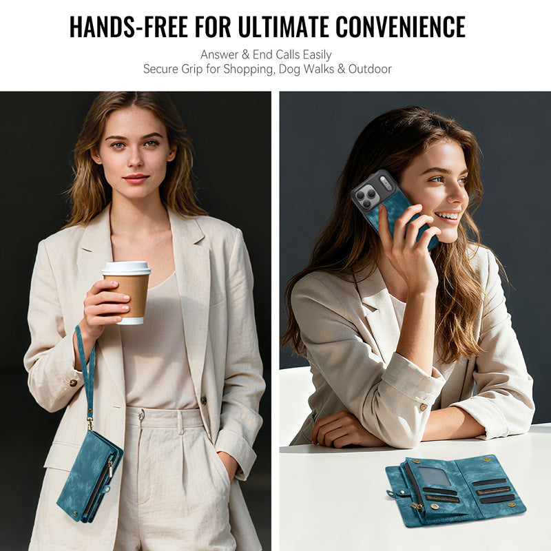 - 2-in-1 Detachable Wallet Design: Features a removable magnetic wallet case. Carry it all with 8 card slots, 1 zipper pocket for coins, and 1 cash compartment—perfect for daily use without a bulky purse.